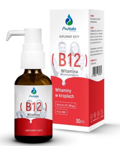 Suplement diety Avitale Witamina B12 to najmocniejsza obecnie biologicznie aktywna witamina B12 w kroplach na polskim rynku. Forma metylokobalaminy, gwarantuje lepszą przyswajalność i bezpośrednie wykorzystanie witaminy przez organizm.